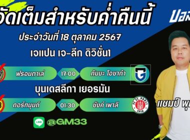 แชมป์FM99 ทรรศนะบอลประจำวันที่ 18 เดือน ตุลาคม 2567