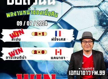 เอกม้าขาวFM99 ทรรศนะบอลวันที่ 9 เดือน กรกฎาคม 2567
