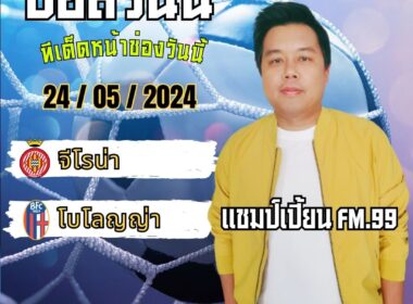 แชมป์เปี้ยนFM99 ทรรศนะบอลประจำวัน ศุกร์ ที่ 24 เดือน พฤษภาคม 2567