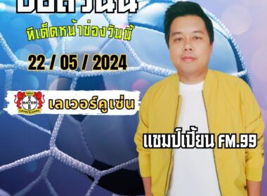 แชมป์เปี้ยนFM99 ทรรศนะบอลประจำวัน พุธ ที่ 22 เดือน พฤษภาคม 2567