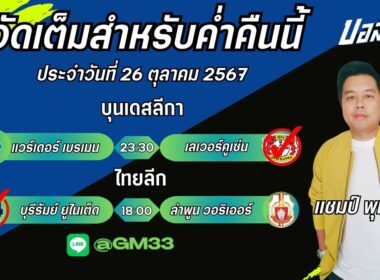 แชมป์FM99 ทรรศนะบอลประจำวันที่ 27 เดือน ตุลาคม 2567